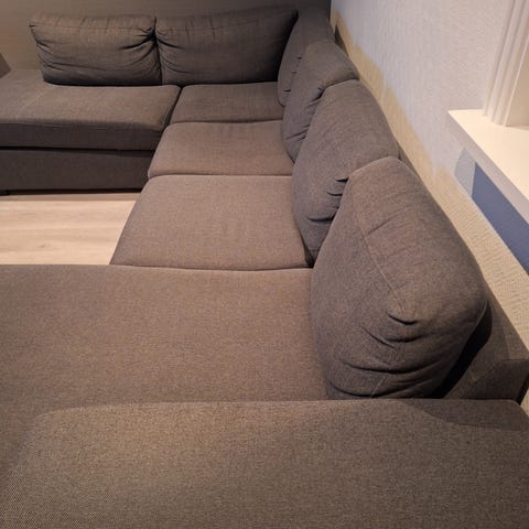 Godt brukt sofa, men i hjem uten dyr, kunne trengt en rens. Sofaen har noen flekker på trekket som kan vaskes bort, trekket kan tas av og vaskes enkelt i en vaskemaskin.