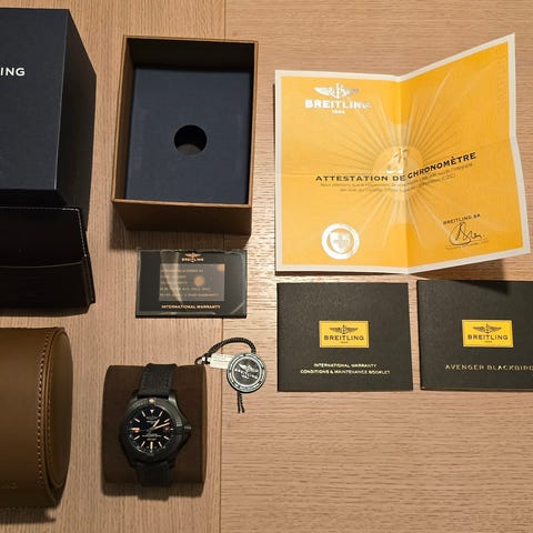 Selger en nydelig og robust Breitling Avenger 42, kjent for sin pålitelighet og stilige design. Dette er en av de mest allsidige modellene fra Breitling, som passer perfekt både til hverdags og til eventyr. Den er pent brukt i rotasjon med andre klokker.