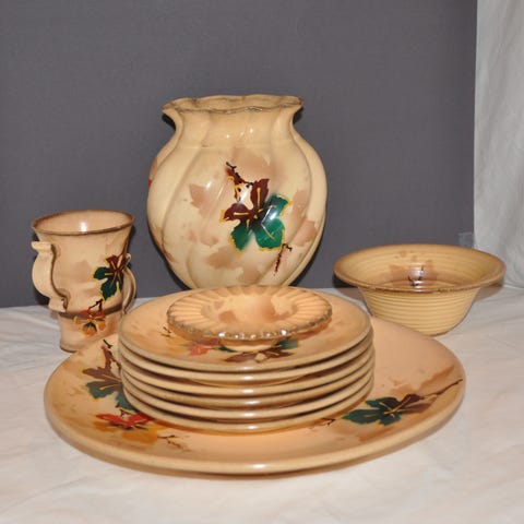 Nydelig grønn og oransje Ekeby keramikk mugge