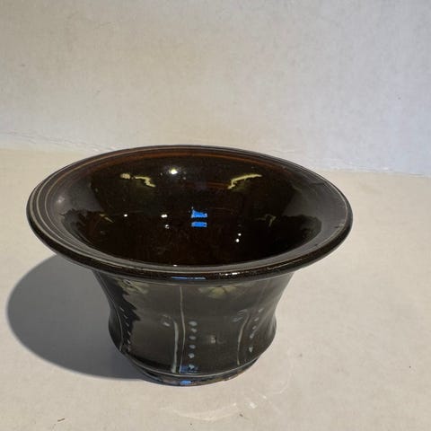 Ekeby nr 2501 keramikk mugge med grønn og oransje glasur. Muggen har en unik form og et håndtak. Diameter på ca. 13 cm. Laget i Sverige.