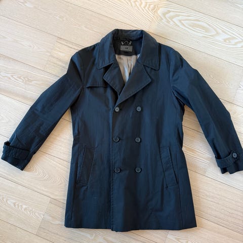 Blå lang jakke brukt 2 til 3 ganger