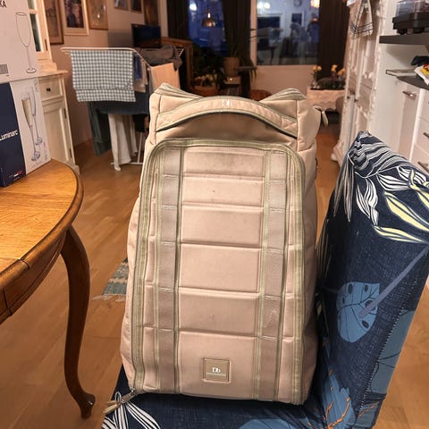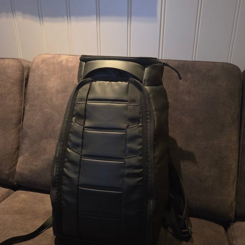 DB ryggsekk laget av kunstlær, designet for unisex bruk. Sekken har polstrede skulderstropper og flere rom for oppbevaring.