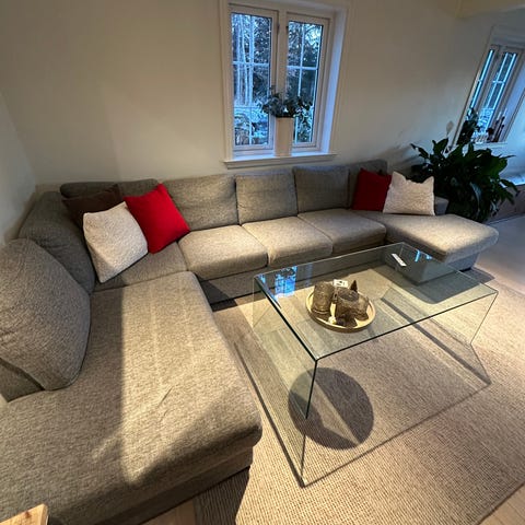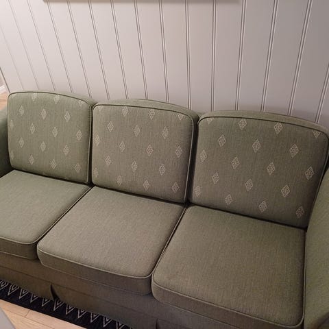 Ekornes 4 seter sofa selges. Den har 2-3 fjærer som er gåen og bør kanskje byttes ut. Selges billig da vi ikke orker styret med det og ikke har plass til den. Står lagret innendørs.