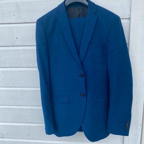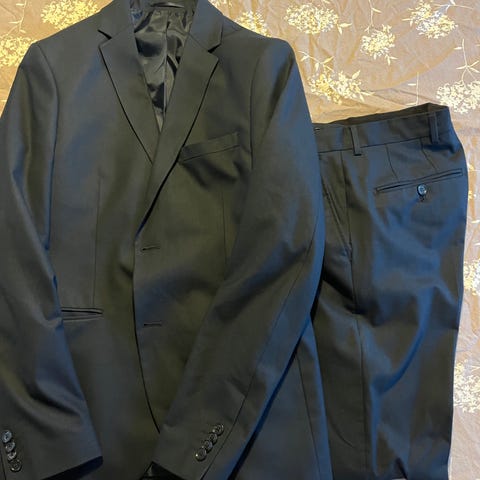 Pen sort dress, jakke str 46 og bukse str 48.