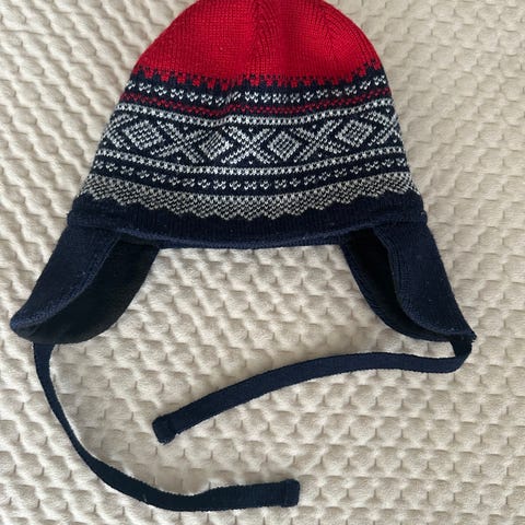 Polarn O. Pyret barnelue svart med mønster, ull/ bomull/ unisex one size