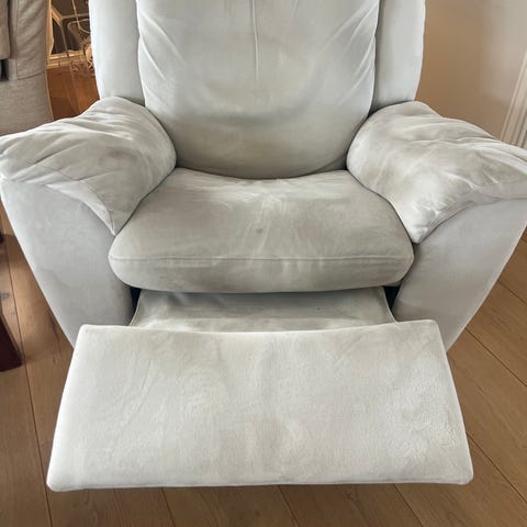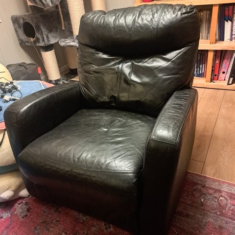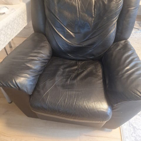 Gis vekk en lenestol. Den er god å sitte i, men ser ikke fin ut.