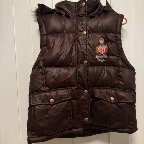 Klassisk marineblå quilted/vattert vest fra Polo Ralph Lauren, i str M, pent brukt.