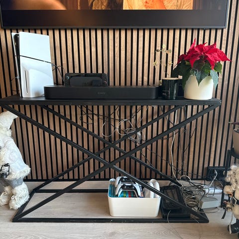 Selger denne LACK tv-benken da vi har skaffet en annen tv-benk. Ingen synlige bruksmerker, har en metallbit festet slik at man kan skru den fast til veggen.