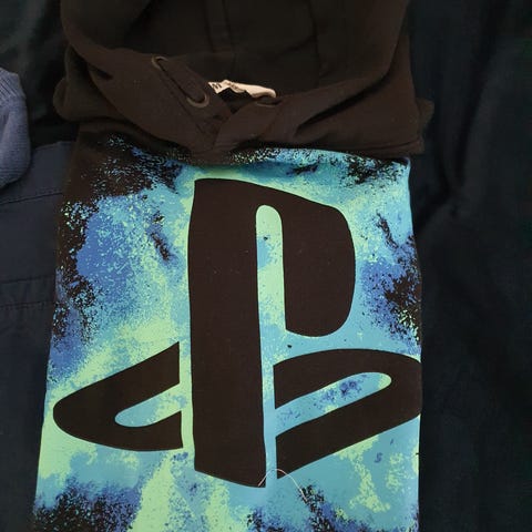 Svart playstation morgenkåpe fra H&M med hette. Str 158/164. Brukt av ett barn.