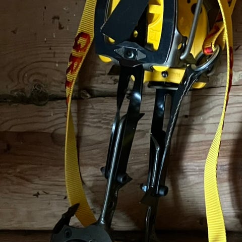 Charlet Moser isøkser, Grivel stive stegjern og 6 Black Diamond isskruer samt et snøanker selges samlet.