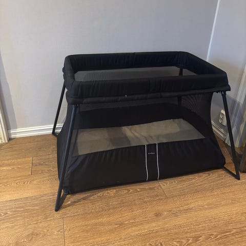 4 ME Reiseseng barnemøbel i svart materiale. Designet for enkel transport og oppbevaring, egnet for barn. Str. bredde 65 cm, lengde 125 cm og høyde 75 cm.