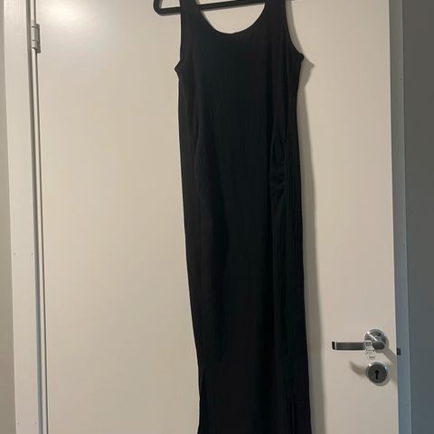 Ribbestrikket grå tettsittende kjole (nydelig gravidkjole), masse stretch. Tilnærmet ubrukt. Fargen er litt blågrå.