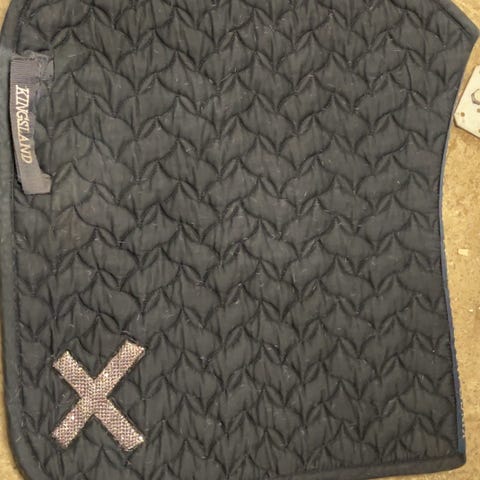 Kingsland Hvit Salunderlag i quiltet materiale med blå kant og brodert logo. Passer til bruk under sal ved ridning. Dressur. Str FULL , nyvasket. Noen merker.