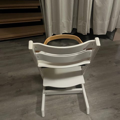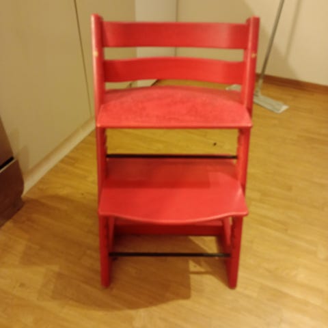 Stokke steps barnestol med avtakbart brett og polstret sete.