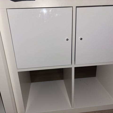 Laget noen hull bak på hyllene til stikkontakt og kabler. Men ingen merkbare bruksmerker foran.