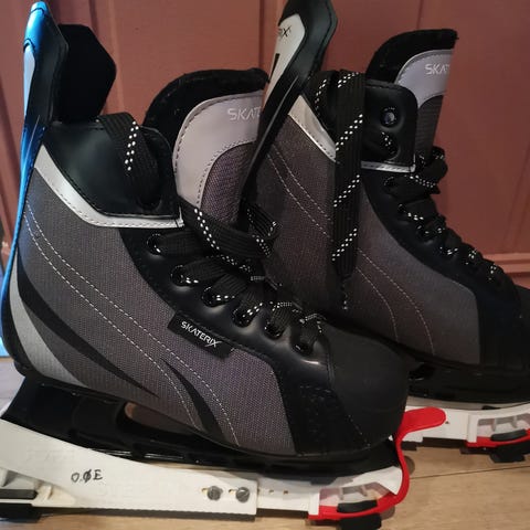 Eldre kunstløpsskøyter i lær, ca 39/40. Litt rust på stålet, men det kan slipes