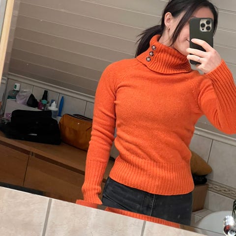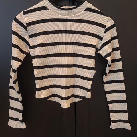 Tilnærmet ubrukt tettsittende ribbestrikket grå genser høy hals