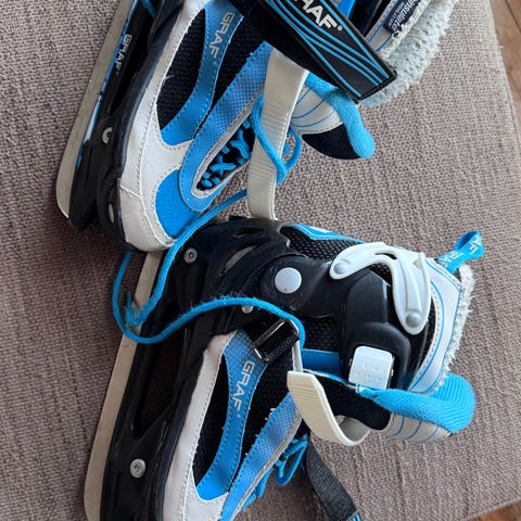Pent brukt skøyter for barn som kan justeres til 4 ulike str. 2 spenner til stramming, ingen knyting. God støtte til ankel