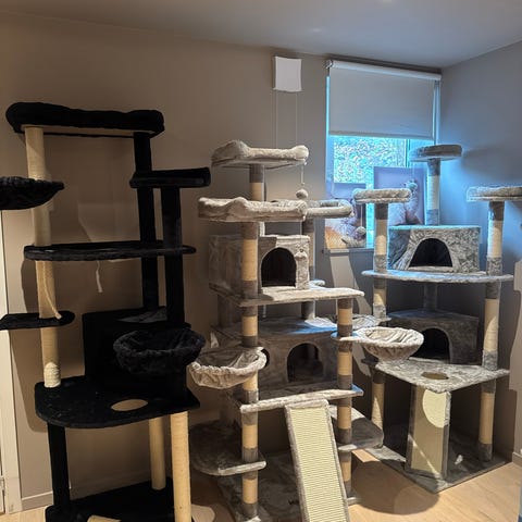 Gi katten din et ekte klatreparadis med Marcos – vårt største og mest luksuriøse klorestativ. Med hele 172 cm i høyden og over en meter bredde er dette et komplett aktivitetstårn for både små og store kattefamilier. Her får katten utløp for alle sine instinkter – fra kloring og klatring til hvile og lek.