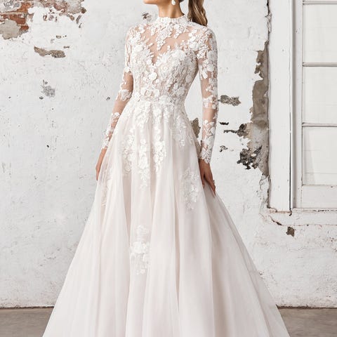 Lilli brudekjole fra Anna Johnson Brud i Lillestrøm 2025 selges. Brudeslør Leaf Flower Lace applications 250 cm og underskjørt med satengskjørt og 2 ringer kan medfølge.