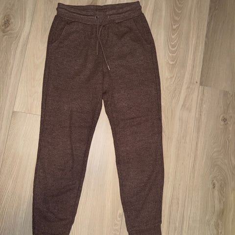 Sett med genser og bukse. Buksen er brukt mer enn genseren, litt nuppete på innsiden men fin utenpå. Er litt støvete på bildet bare. Buksen er str S og genseren er M.