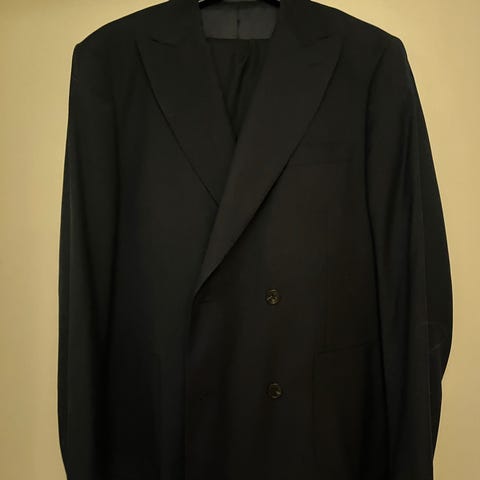 These Glory Days dress, laget av ullmablanding. størrelse 44 på jakke, 46 på bukse, for menn. Jakken har klassisk design med to lommer foran og en knappelukking, egnet for formelle anledninger eller profesjonelt bruk.