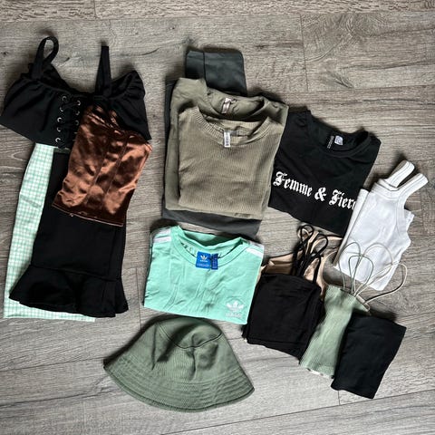 Klær i størrelsene XS, XXS, 170, 160, 152.