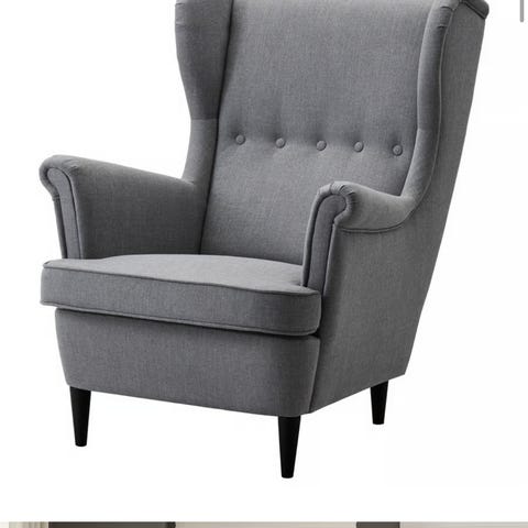 IKEA strandmon stol med puff, fløyelsgrønn. Vært i hjem med hund, men hunden har ikke vært i stolen. Informerer om dette, om dette kan ha noe å si for allergikere😅