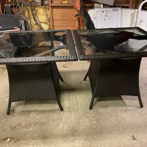 Gammelt bord med glassplate gis bort