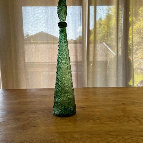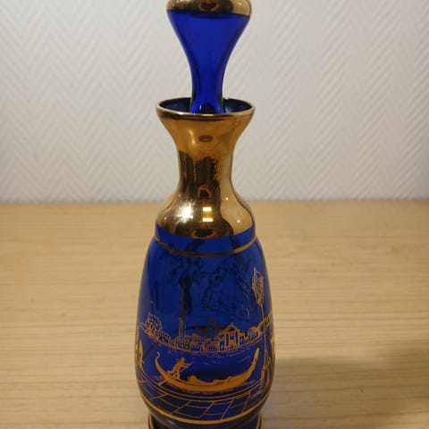 Dette er muligens et samleobjekt. Glasskaraffelen er laget i Italia på 1950-1960-tallet av Rosselini/Empoli