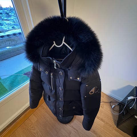 Moose knuckles svart dunjakke med fast hette