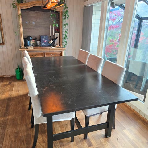 5 stoler som er lite brukt, men begynt å flasse så trenger kanskje å trekkes om. Pris kan diskuteres ved hurtig handel 🙂