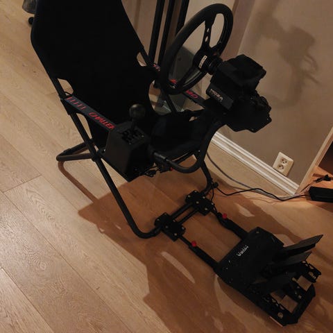 Selger en playseat rigg med logitec g920 ratt, pedaler og girspak. Sitter en buttkicer under stolen som gjør at det vibrerer i stolen for en litt bedre kjøre opplevelse.