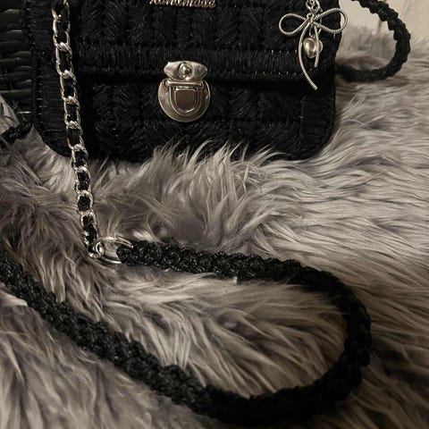 & Other Stories Dameveske laget i andre materialer. Vesken har en strukturert, flettet design i mørk brun farge. Den har håndtak og en rektangulær bunn med metallbeslag for stabilitet.