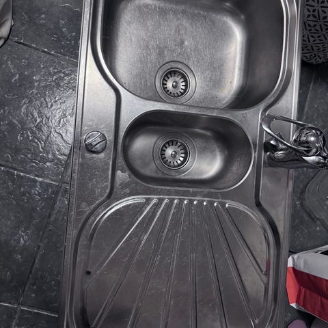 Lengde benkeplate uten kapp 140 cm. Dybde 60 cm. Selve vasken er bredde 50 cm og dybde 46 cm. Har 3 m lengde x 1,20 m bredde ekstra benkeplate, kan splittes i som gir 6 meter. Selges for kr. 1200. Har også underskap tilsalgs hvis interessert