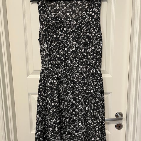 Only kjole selges. Mørkeblå med mønster. Volang i skjørtet. Sitter kjempe fint på. Pent brukt.