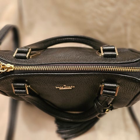 Michael Kors dameveske svart farge. Vesken har doble håndtak og en skulderrem for variabel bruk. Den har en låsbar lukking med gullfarget metallbeslag og en dekorativ Michael Kors-logo i metall. Innvendig rom med flere lommer for oppbevaring.