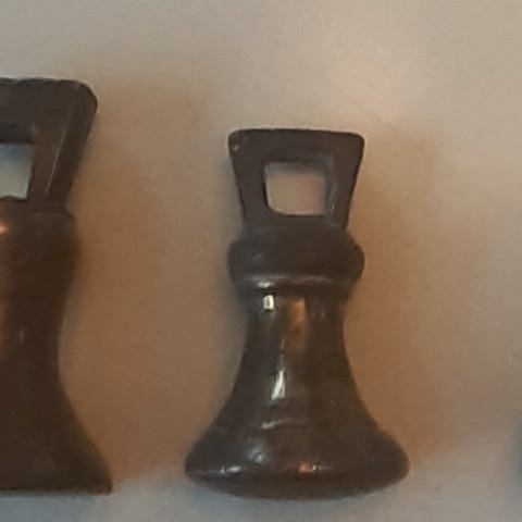 Verdens fineste grytelodd i messing og det jeg tror er sjelden bakelitt(?) knott. Flott som dørstopp!
