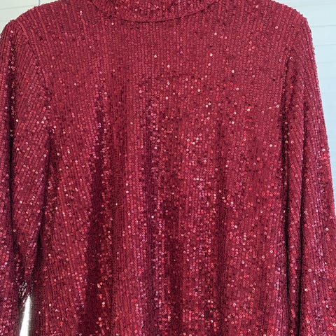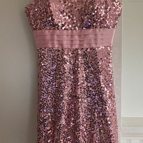 Rød paljettkjole i str S selges. Nydelig åpning bak.