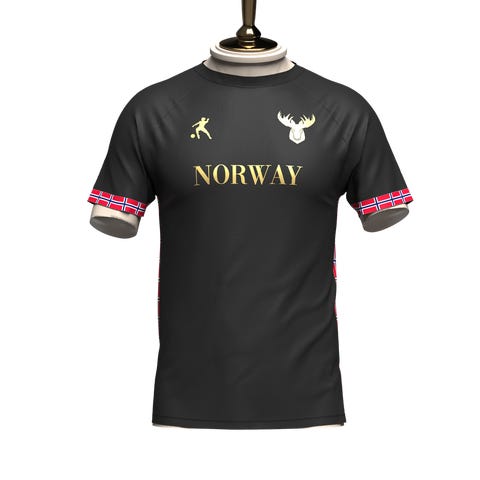 Nike Norge Fotballtrøye for herre i størrelse S. Trøyen har røde, hvite og blå striper med Norges flagg og nummer 9 på fronten. Materialet er Dri-FIT, som gir fukttransporterende egenskaper. Haaland drakt, norge hjemmedrakt.