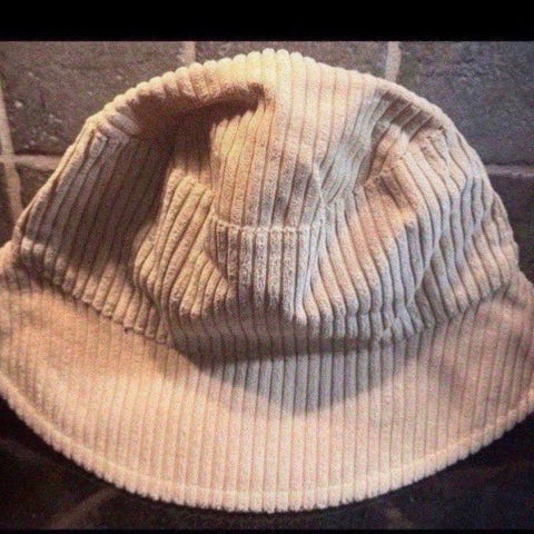 En vintage regnhatt i gummi eller plast for kvinner, laget i Hong Kong.