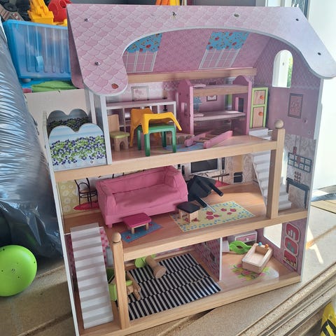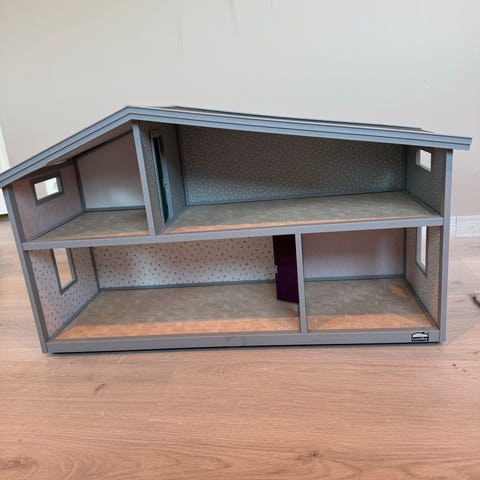 IKEA dukkehus laget i tre med flere rom for oppbevaring og lek.