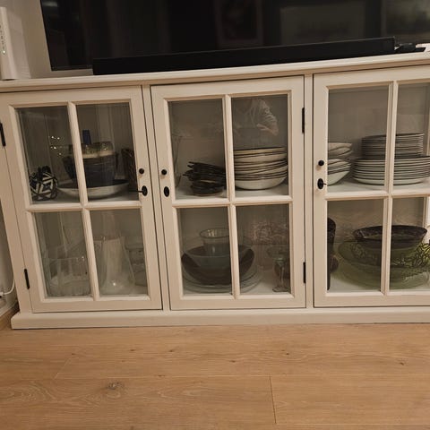 Antikk farge sort. Dørene er demontert etter flytting så bildet av skjenken blir ikke så bra. Gått ut av produksjon. Det er kun mulig å ta av dører ved transport.