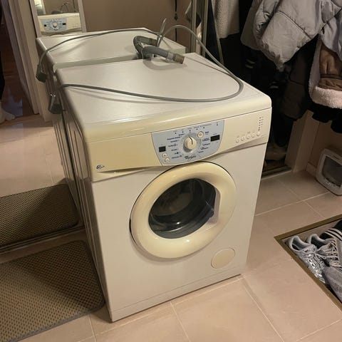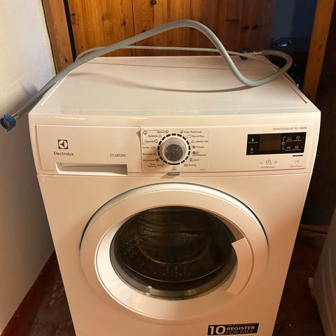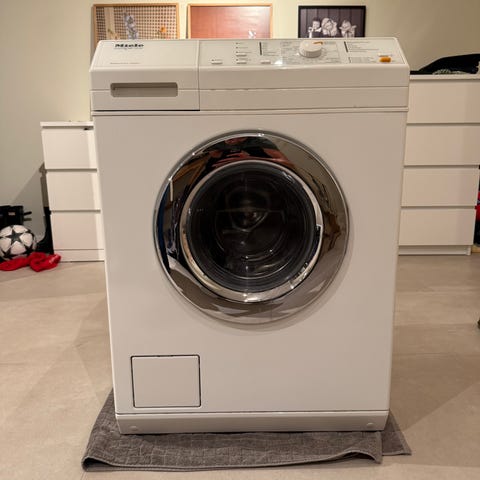 Gram frontmatet vaskemaskin med standard hvit farge og kontrollpanel med flere vaskeprogrammer. Maskinen har en frontmatet dør og skuff for vaskemiddel. Maskinen er fra 2018/19, og virker som den skal, men bråker mer under sentrifugering nå enn da den var ny.