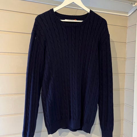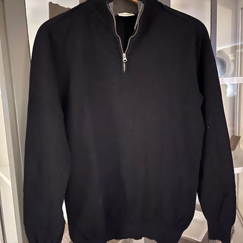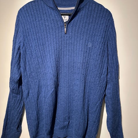 Selected genser i blå farge, størrelse M, laget av bomull. Genseren har glidelås i halsen.