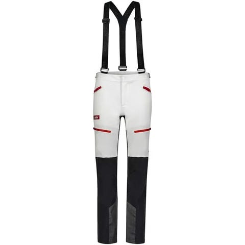 Surmount Shell Bib pants med seler er en teknisk alpinbukse. Hovedstoffet er vind og vanntett, med en pustende, glatt bakside for komfort. Skibuksene er heltapede, med glidelåsgylf og avtagbare seler foran. Midjen bak er elastisk for ekstra komfort. Lang glidelåsåpning langs sidesømmen som også kan brukes til ventilasjon. Forsterket stoff nederst på beina, og den innvendige gamasjen er laget i 4-veis stretchmateriale med borrelås, trykknapp og strikk for å passe en skistøvel.
