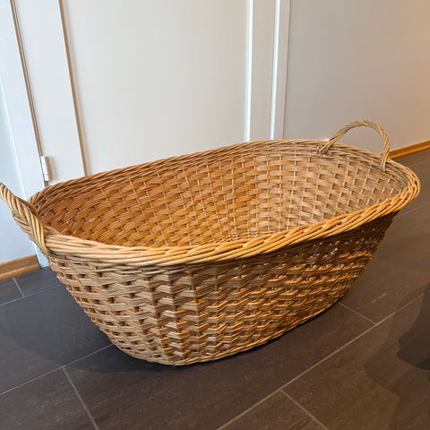 Kjempefin stor vintage kurv. Kjekk til soppplukking/sanking, oppbevaring av håndarbeid/garn, til skjerf/yttertøy, håndkle, småting osv. kanskje til og med ha ved eller planter oppi?
