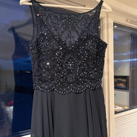Rydder i skapet og selger denne vakre sølvkjolen. Passer str 34-36.