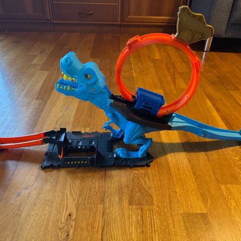 Hot Wheels City T-Rex Blaze Battle Bilbane gitt til 5 åringen i april 2025, men vært svært lite brukt.