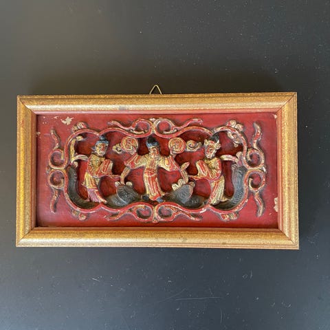 Antikk Veggdekorasjon i form av et ansikt i malt treverk